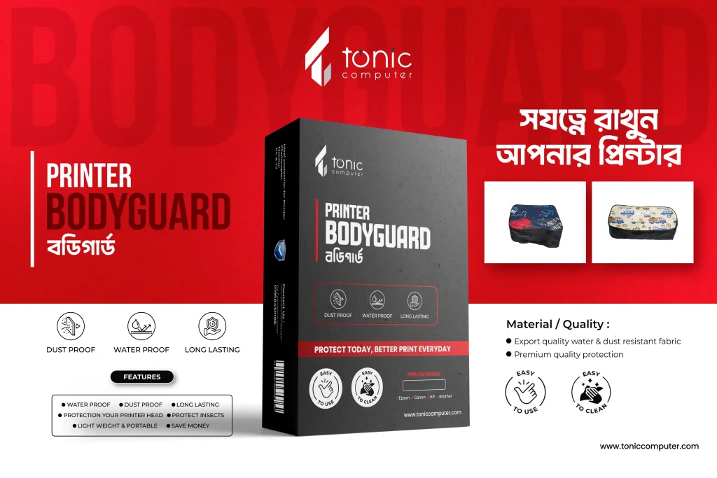 এই সমস্যা সমাধানে Tonic computer বাজারে নিয়ে এসেছে Printer Bodyguard। যেটা ব্যবহারে আপনার প্রিন্টার থাকবে সমস্ত ধুলাবালি, ইদুর, পোকামাকড় ও পানি থেকে মুক্ত।